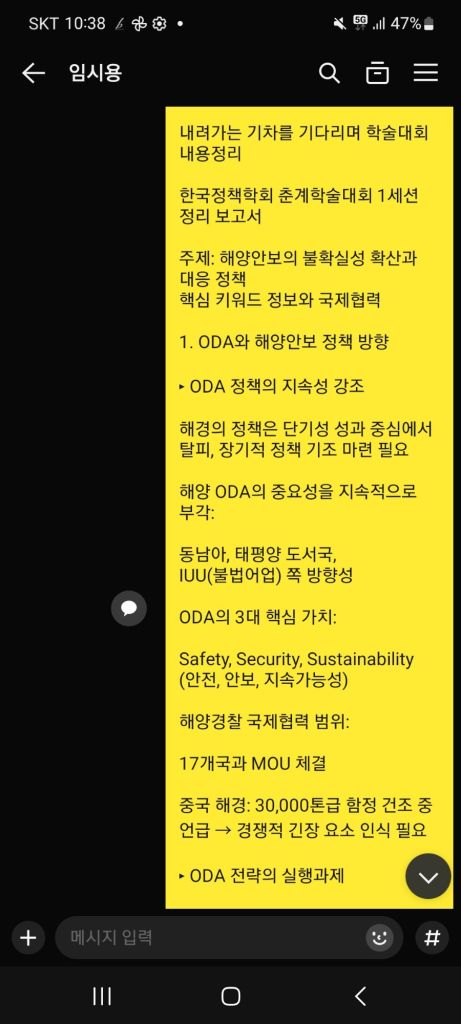 내가 가장 관심을 가진 세션은 해양안보와 ODA 정책 방향에 대한 발표였다.